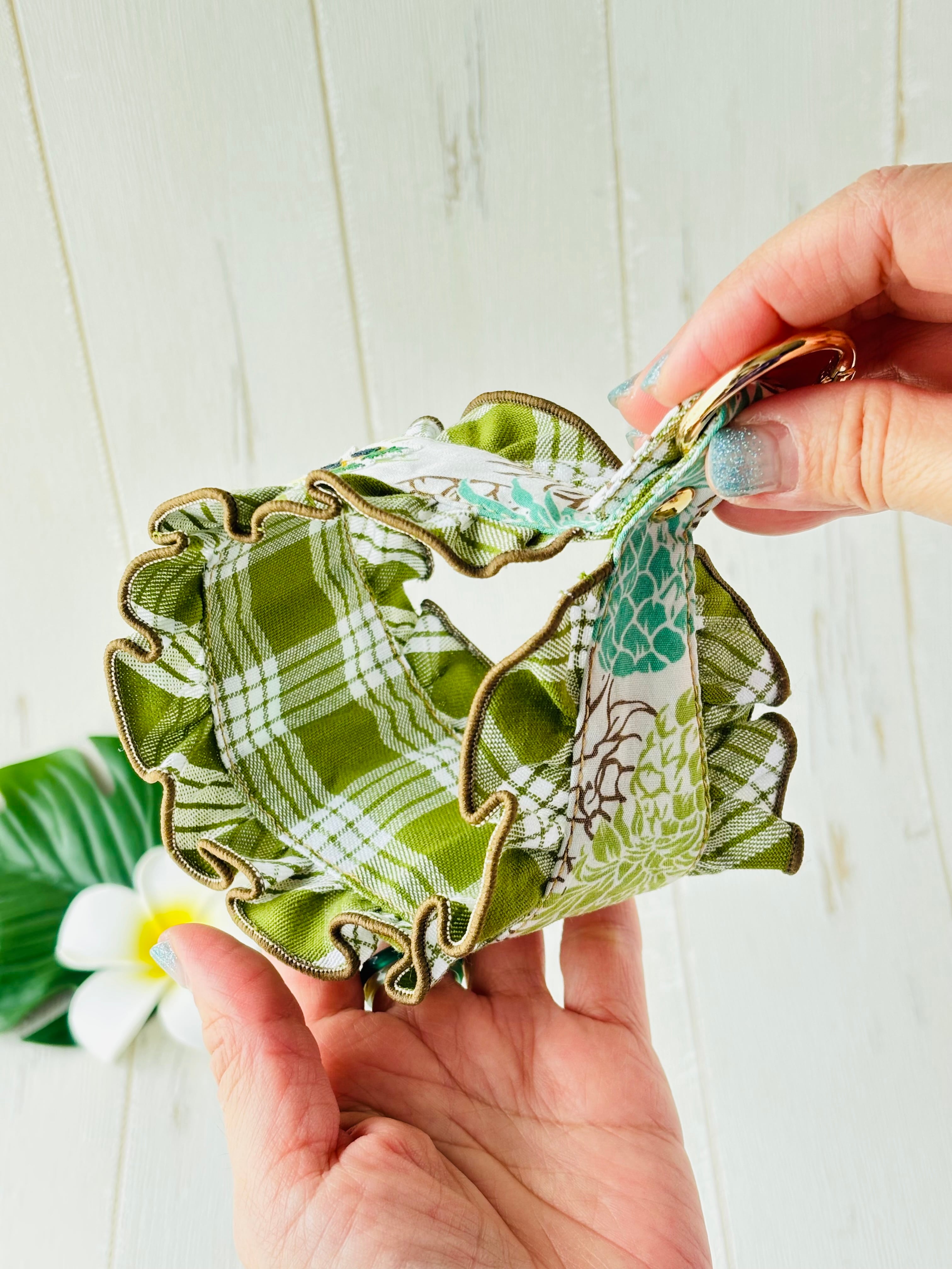 フリル部分はハワイ伝統のパラカチェックをバイアスにCUT