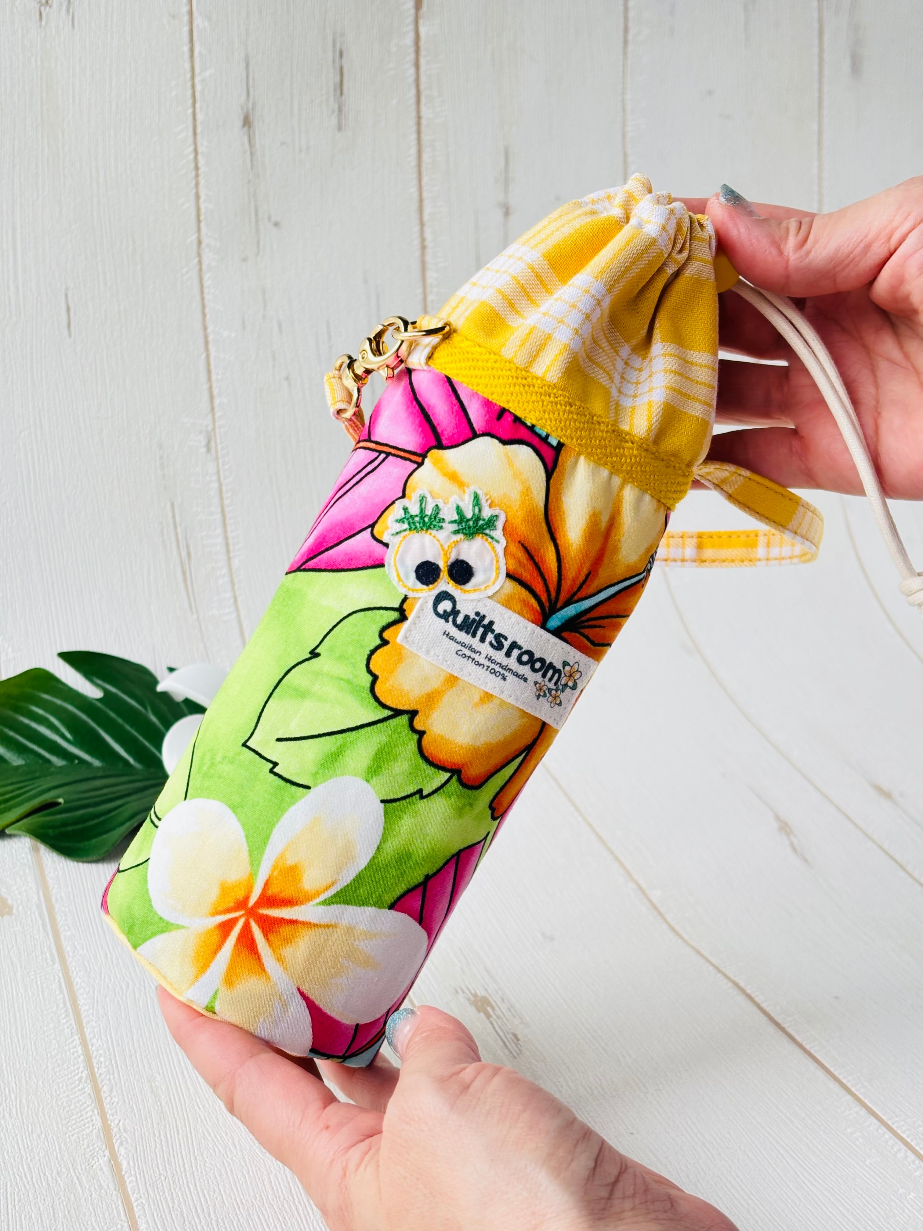 Quiltsroom® ハワイアン ペットボトルケース|保冷・巾着・持ち手付き 送料無料☆彡